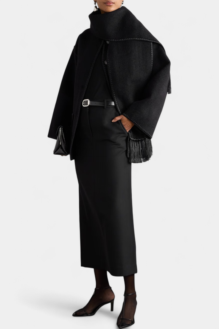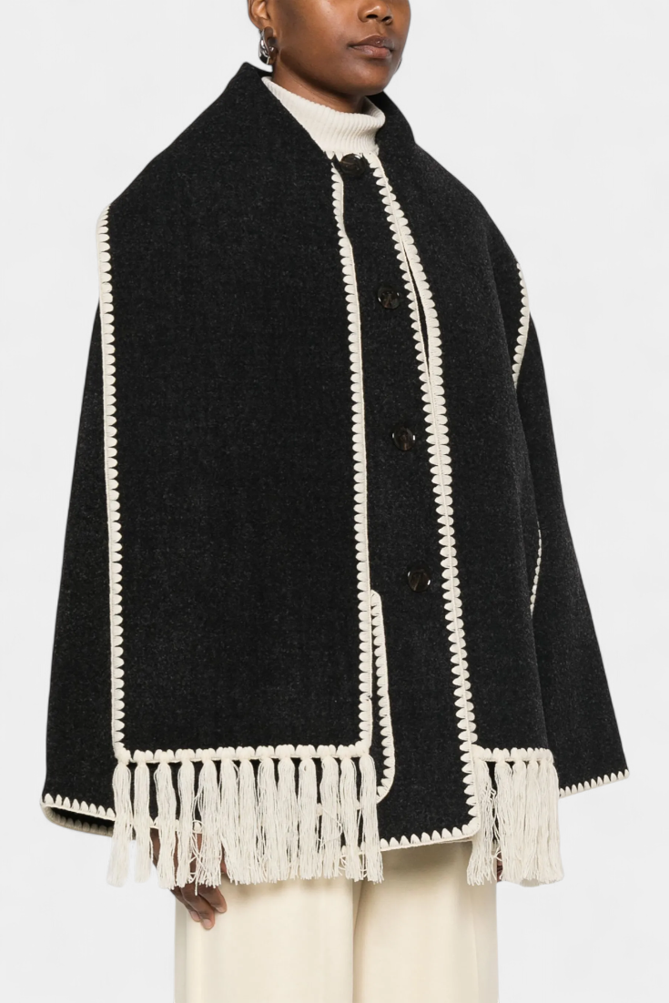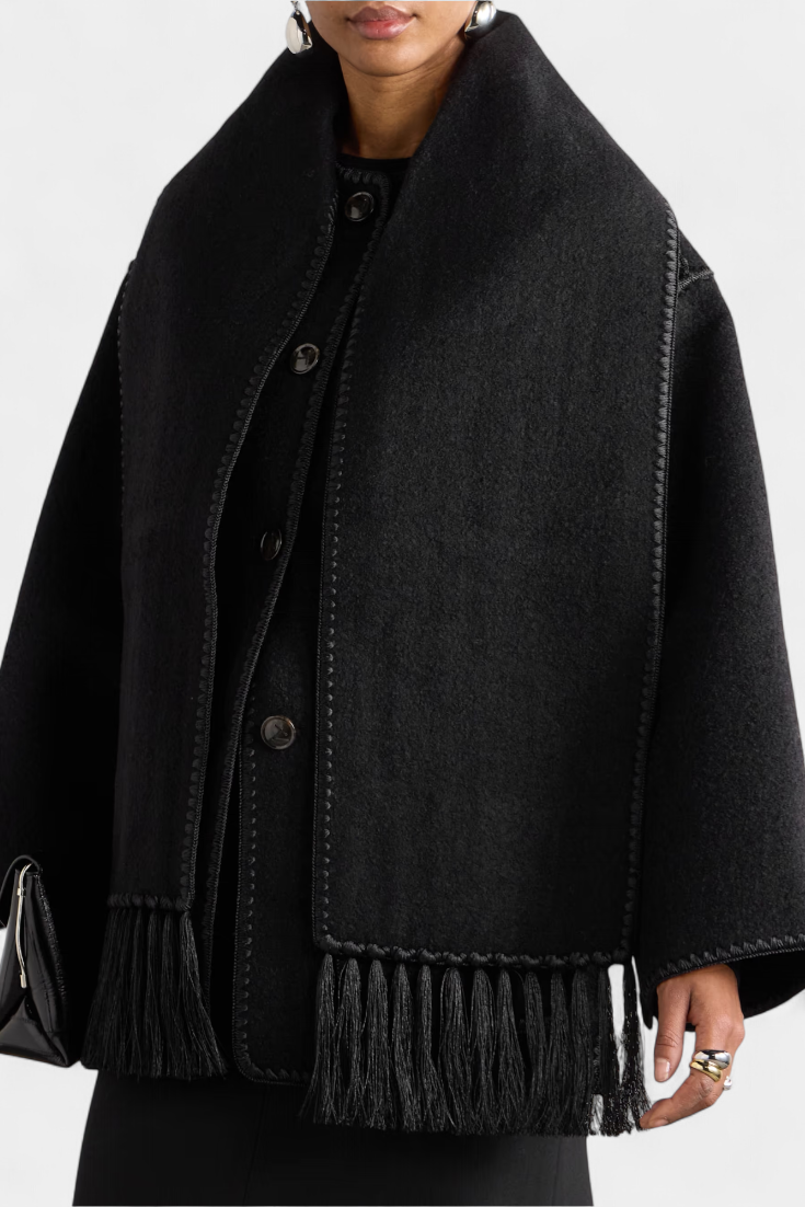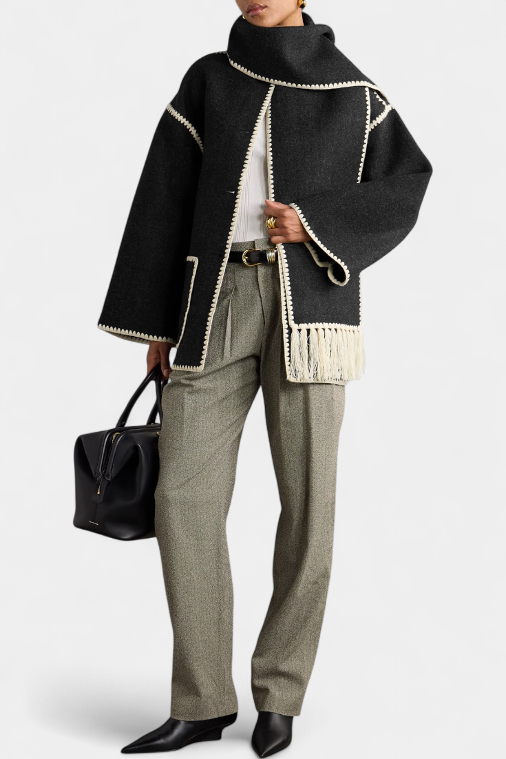 Pauline | Abrigo de Corte Suelto con Bufanda de Flecos Incorporada